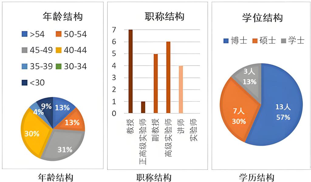 为了更好地应对人才培养新形势新任务,公司于2018年进行基层学术组织调整,将物理理论与实验教学团队打通互融,调整后的教学团队结构合理、骨干力量相对稳定。中心现有教师23人,博士13人,教授和正高级实验师8人,副教授和高级实验师11人;博士生导师4人,硕士生导师18人。