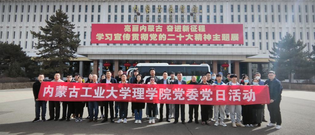为深入学习宣传贯彻习近平新时代中国特色社会主义思想和党的二十大精神,凝聚师生党员思想共识,激发干事创业的奋进力量,3月10日下午,公司党委开展主题党日活动,组织师生党员60余人,赴内蒙古自治区展览馆参观“亮丽内蒙古 奋进新征程—学习贯彻党的二十大精神主题展”。