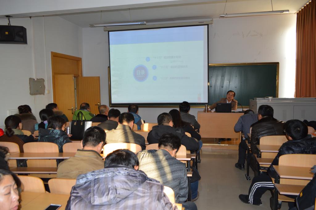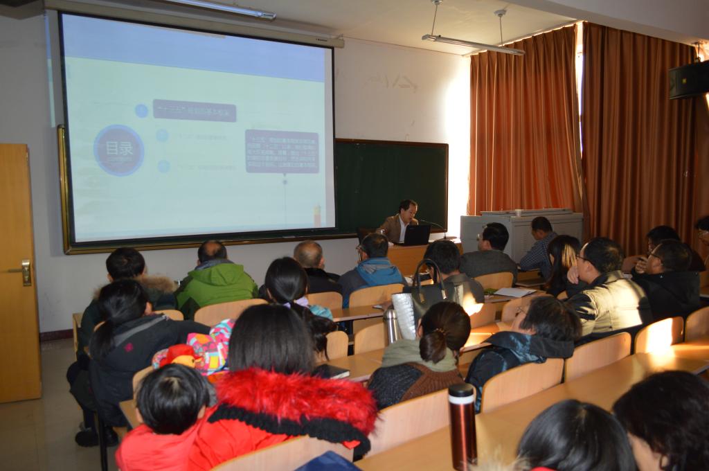 为贯彻落实党的十八届五中全会精神,根据公司党委“10+3”活动方案要求,11月26日下午,公司党委举行学习党的十八届五中全会形势政策报告会,邀请马克思主义公司布和朝鲁教授作题为“‘十三五规划建议’的基本框架和逻辑体系”的宣讲报告。公司党委书记曙光,经理庞晶,副书记、副经理赵星及全体教工和员工党员聆听报告。曙光主持报告会。