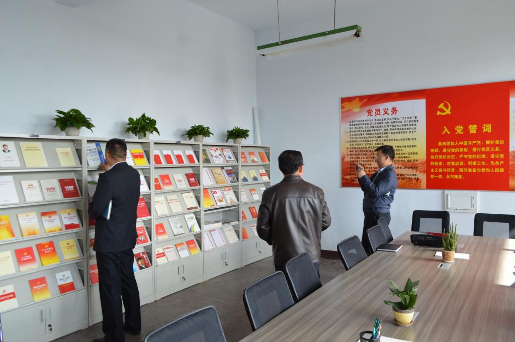 在党员活动室,大家听取曙光书记对公司创建党员活动室的工作要求和工作思路、上墙内容、基本设施、管理制度、党建丛书等内容。
