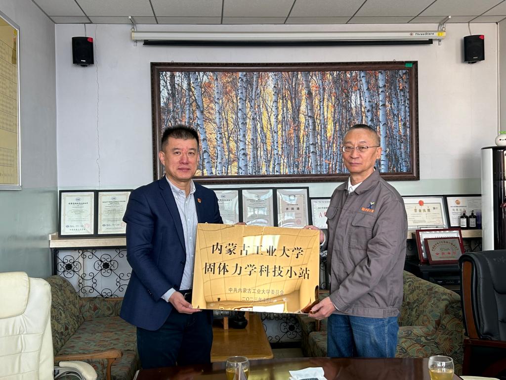 2023年12月18日上午,公司党委书记王振友,经理李海滨,副经理吕书锋,力学系主任李磊,力学系教师王雪峰一行5人赴公司本科生和研究生实习基地-呼和浩特融信新金属冶炼有限公司调研交流,并举行公司固体力学科技小站挂牌仪式。
