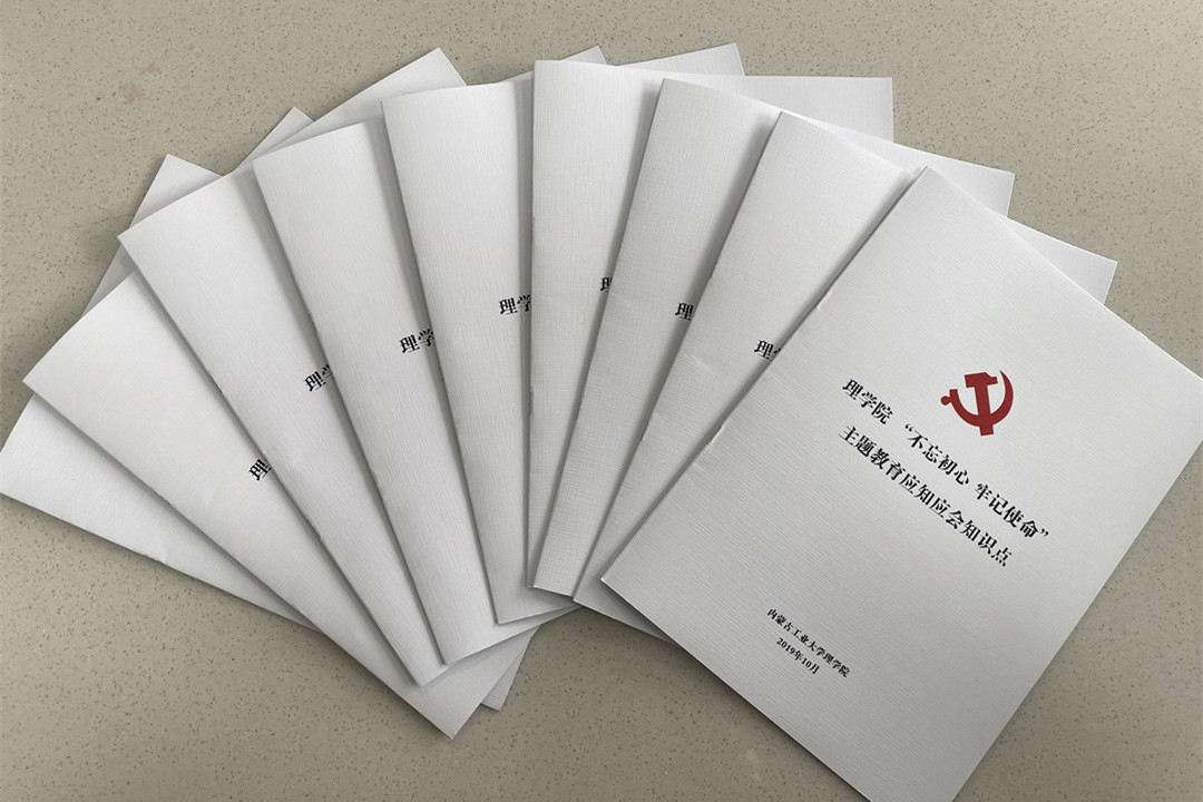公司围绕教育学习内容,整合摘录习近平总书记在“不忘初心、牢记使命”主题教育工作会议上的重要讲话精神、党章党规、主题教育重要知识点等内容,制成应知应会口袋书,并发给每名党员师生,便于师生随时随地开展学习交流,增强了师生的学习兴趣。