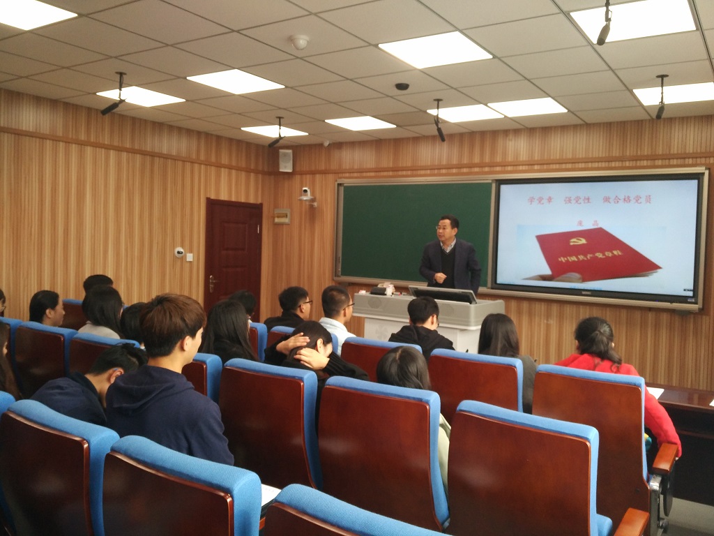 随后,庞晶为全体学员讲题为《学党章强党性做合格党员》的党课。他从中国共产党的诞生讲起,以历届中国共产党全国代表大会与党的章程为脉络,解读党对中国革命和社会主义建设的认识是一个不断深化的长期历史进程。他强调,坚持理论联系实际,自觉维护群众利益,做一名“接地气”的合格党员。两节课中,老师们精妙新颖的讲解使在场学员沉浸其中、产生共鸣,报告现场掌声阵阵。