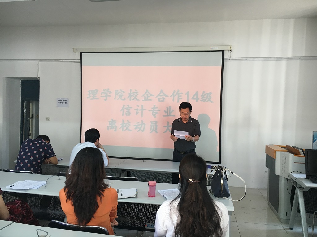 5月27日,bevictor伟德举行2014级信息与计算科学专业(智能移动开发方向)离校动员大会,bevictor伟德经理、校企合作工作小组组长庞晶,党委书记曙光老师、班主任赵星及企业驻校区辅导员、数学系、教务中心等老师和信计专业2014级2个班全体员工参加大会。