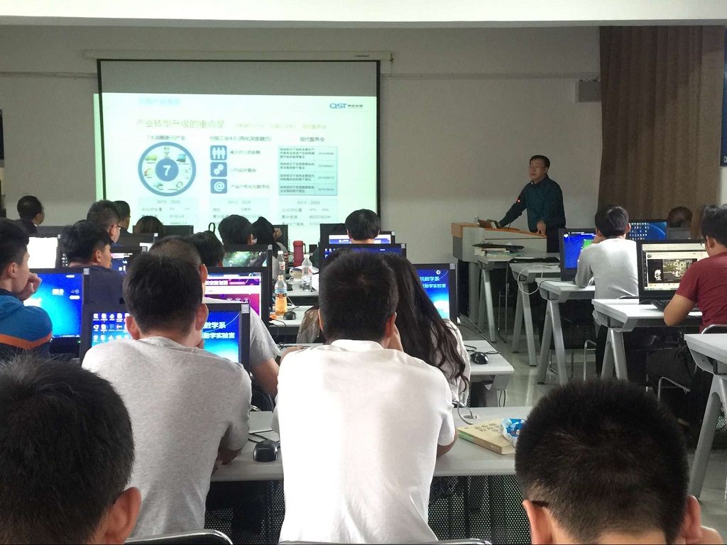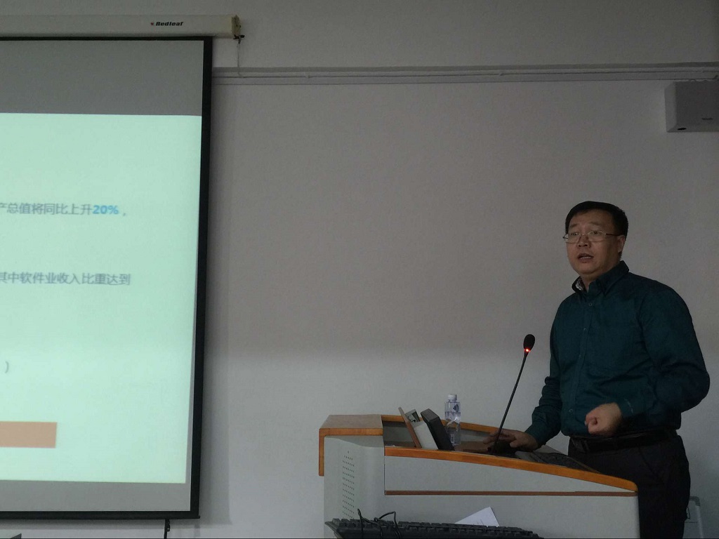 李占军首先对公司65周年校庆表示了祝贺并回顾了近几年公司与青软合作历程。随后,他以“变化的世界”视频为切入,结合IT产业人才需求现状、校企人才培养模式和优势及就业前景向大家讲解了移动互联的魅力所在。他对“信·未来”企业文化的深度解读,使同学们对本专业有了更清晰的认识和美好的憧憬。