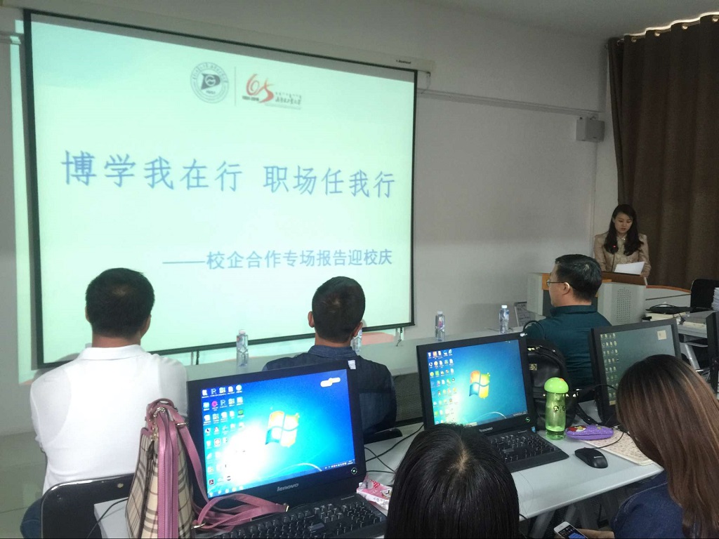 为庆祝公司建校65周年校庆, 9月9日下午,bevictor伟德在实验楼会议室举行“博学我在行 职场任我行”校企合作专场校庆报告会。公司党委副书记、副经理赵星出席并主持报告会,就业办主任付磊,学工办辅导员张伟光,企业驻校辅导员黄鹏飞参加会议。本次报告主讲的是青软实训教育科技股份有限公司李占军总经理。