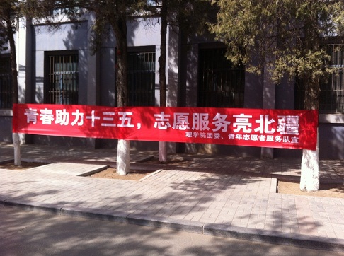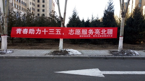 为了让在校老员工融入社会、服务社会、奉献社会,bevictor伟德举办“雷锋月”系列活动,在伟德国际1946的校园里主题为“青春助力十三五 志愿服务亮北疆”的条幅悬挂在校园的多个地方。
