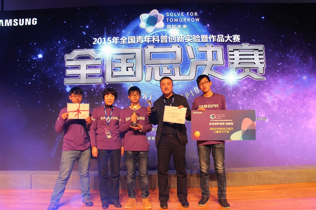 11月27日,由中国科协科普部和共青团中央公司部共同主办的“SOLVE FOR TOMORROW探知未来2015年全国青年科普创新实验暨作品大赛”迎来终极对决。47支来自全国高中、高校的参赛队伍齐聚中国科技馆展开激烈比拼。最终,公司杨仕林、崔剑、王世良组成的“同路人”队获得“安全保护命题”冠军,赢得赴韩参观三星总部的科技之旅机会和三星电子产品礼包;赵宇、弥海鹏、赵欣组成的“彩虹”队获得“安全保护命题”第四名;吴靖宇、李仁杰、赵先竹组成的“iRobot”队获得“智能交通命题”第四名。刘闽华获得“优秀指导教师”称号。公司团委书记王武代表公司领取了优秀组织奖。