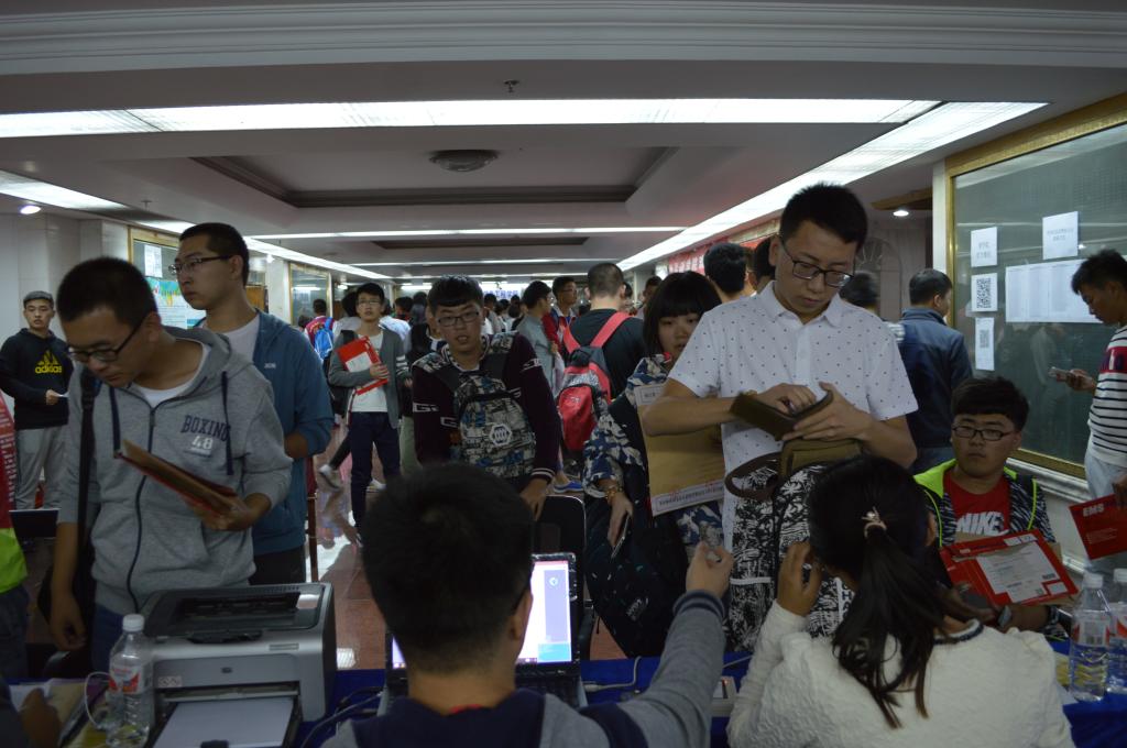 9月12日下午2:00,迎新工作正式开始,由于前期准备充分,迎新工作有条不紊的进行,完成报到手续的同学,在公司的志愿者带领入住宿舍,并且每名宿舍安排相应专业的员工干部与之联系,方便员工遇到问题能够在第一时间得到解决。办理贷款和学费没有及时清缴的同学也由专门的志愿者带领去计财处解决,暂时不能办理的及时安排入住宿舍。12日下午报到110余人,占新生人数的一半。