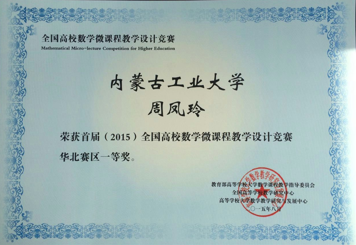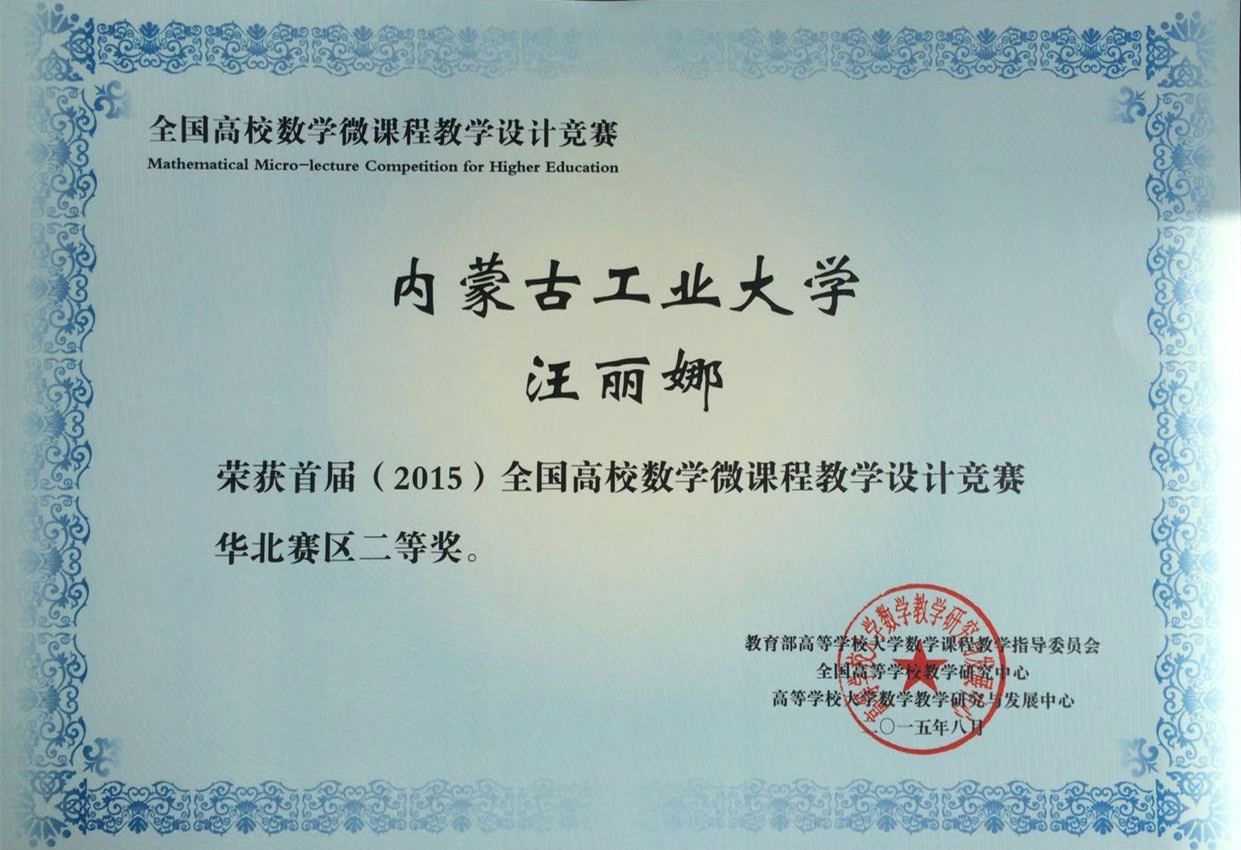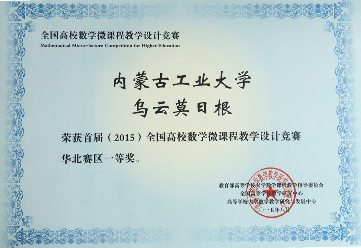 日前,首届全国高校数学微课程教学设计竞赛结果公布,公司教师乌云莫日根、周凤玲获华北赛区一等奖,汪丽娜获华北赛区二等奖。