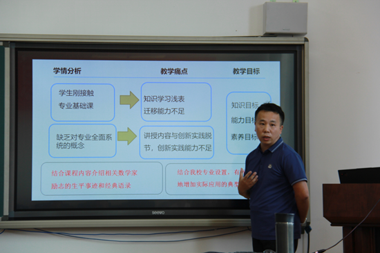 各系高度重视,积极组织,共推荐六位老师参加比赛。比赛包括课程教学设计和现场展示两个环节。各位参赛教师认真备赛,分别从教学目标、教学内容、教学方法与手段、教学评价与反思、教学资源等方面进行梳理和挖掘,根据各自的课程特点,将家国情怀、文化自信、大国工匠及中国人民不屈不挠的精神等思政元素融入到课堂教学中。评审专家对参赛教师各具特色的课程思政教学给予了高度评价,并进行点评,提出了宝贵建议。最终经过专家评审,确定赖俊峰获得一等奖,孟晓凯、刘海英获得二等奖,恒哲巴特、周云鹏、孟建超获三等奖。