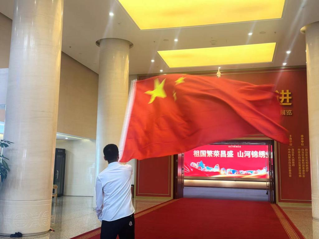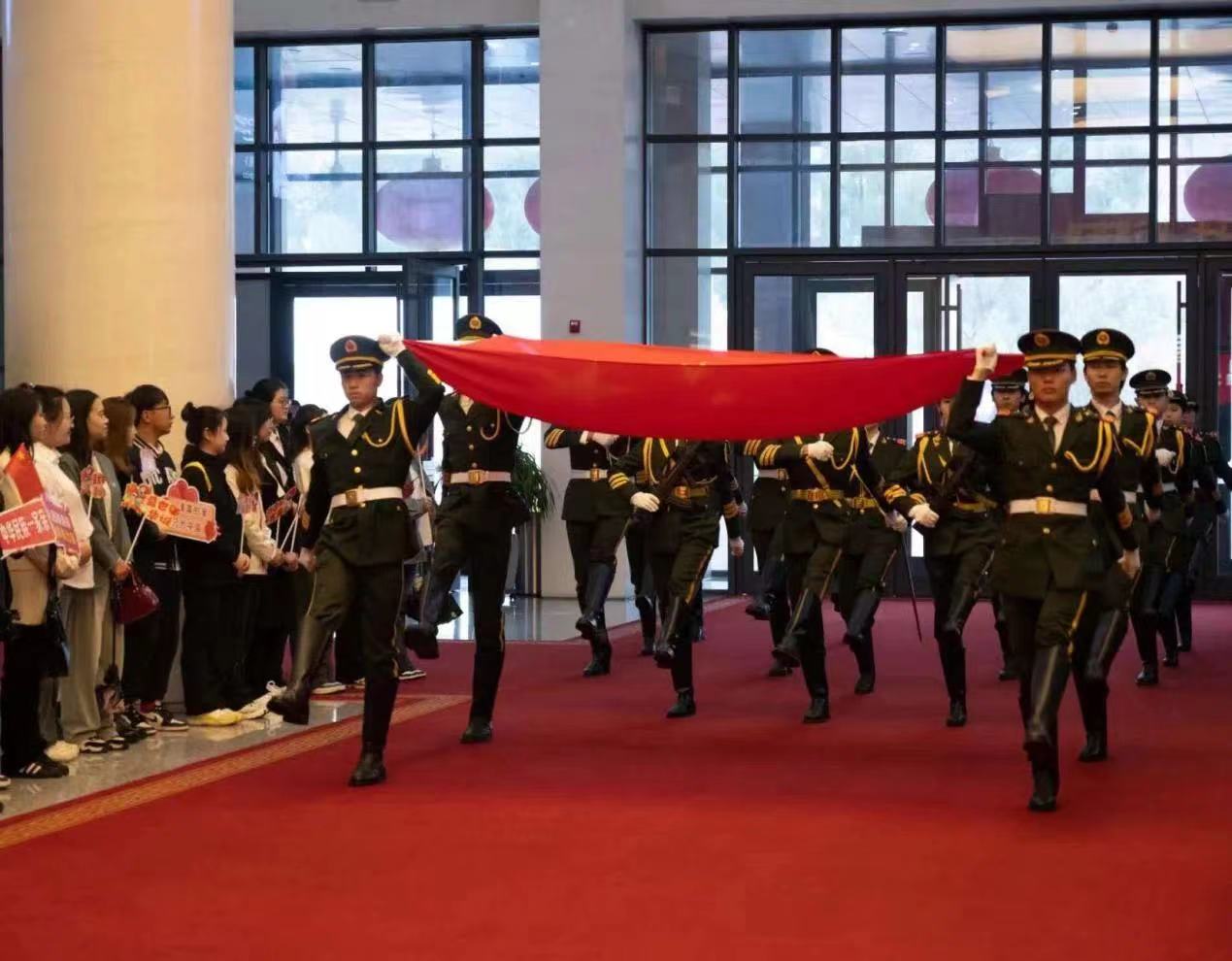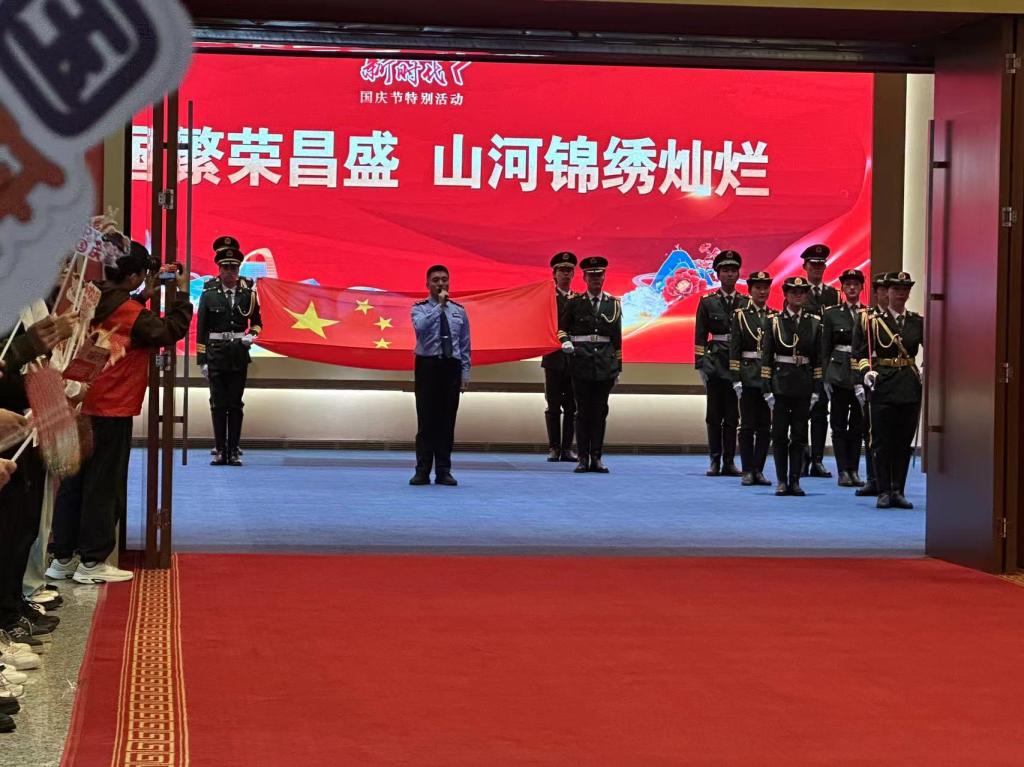 活动伊始,国旗护卫队迈着整齐划一、铿锵有力的步伐,昂首提胸地护卫着国旗步入一楼大厅,全体人员庄严肃立,面向国旗行注目礼,向伟大祖国致以最崇高的敬意。